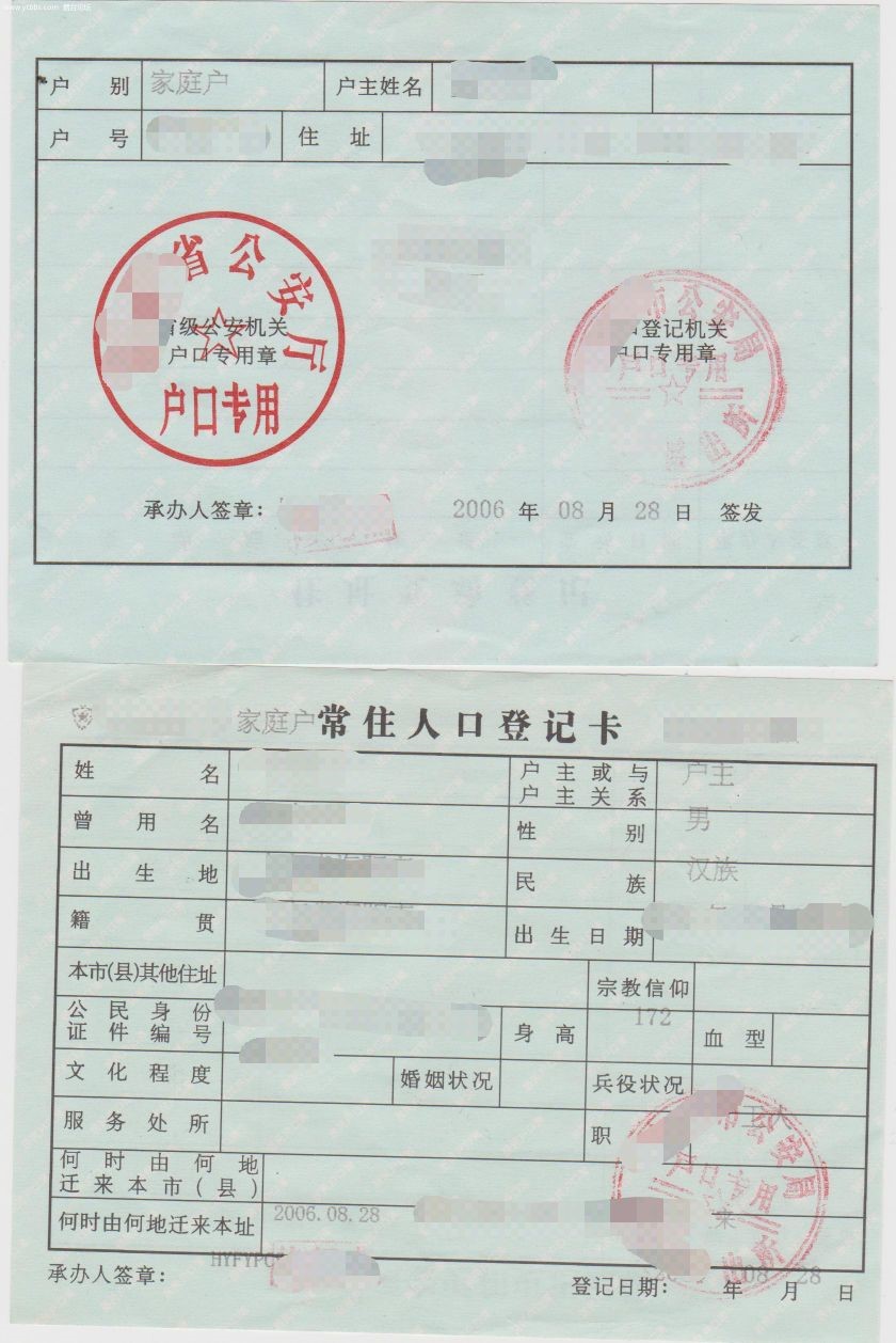 户口本照片示例
