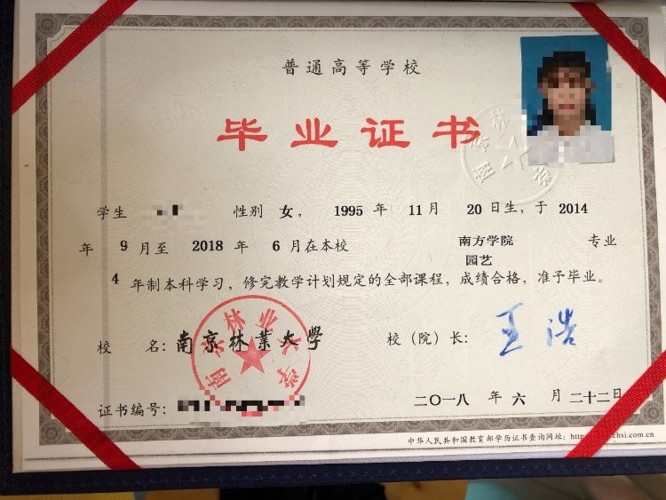 本科毕业证书照片示例