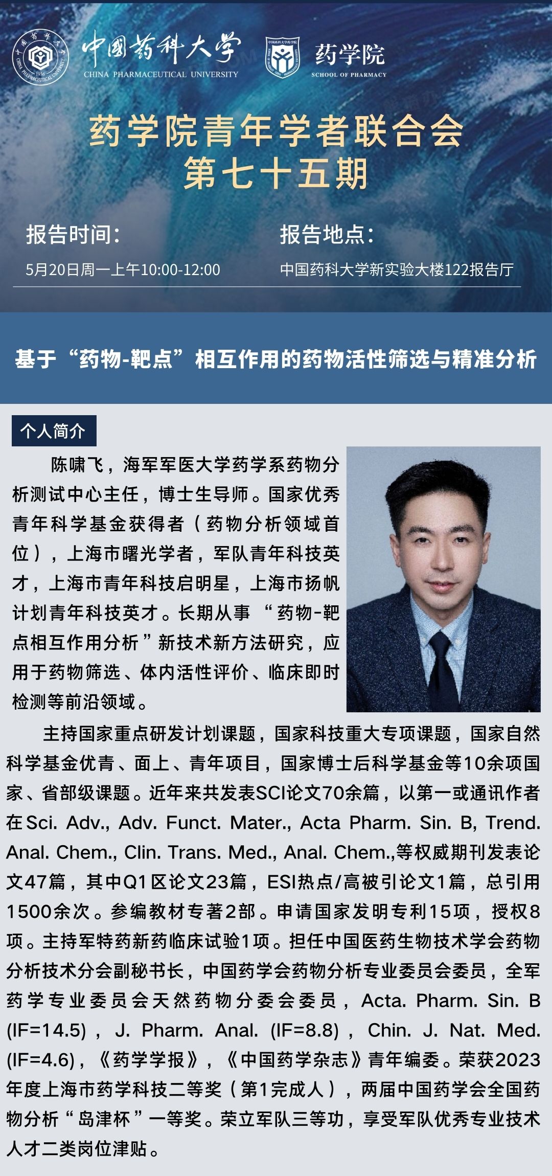 药学院青年学者联合会第七十五期学术报告通知