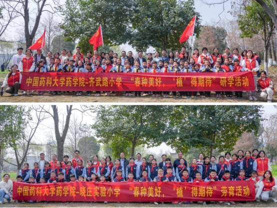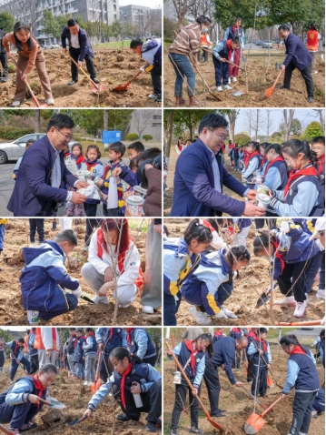 近日,在第47个植树节来临之际,为深入学习贯彻党的二十大精神,弘扬“两山”理念,践行大中小学思政一体化建设,药学院与齐武路小学、南京晓庄学院实验小学在学校江宁校区共建开展“春种美好,‘植’得期待”大手拉小手劳动教育活动。药学院党委书记范素文、齐武路小学邵丹丹校长一行、南京晓庄学院实验小学马小燕校长一行与百名小学师生共赴春约,以植树造林为媒,奏响生态文明建设的青春乐章。