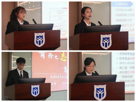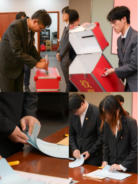 根据大会议程,全体代表听取并审议《大会选举办法(草案)》及大会总监票人、监票人、计票人名单,全体代表无异议鼓掌通过。随后,四名药学院学生会新一届主席团候选人依次进行答辩,全体代表投票选举产生新一届院学生会主席团成员。
