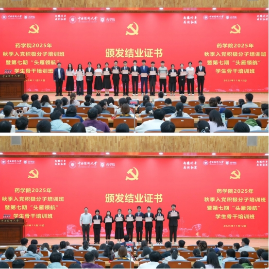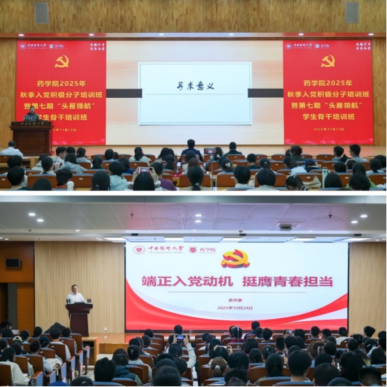 为深入学习贯彻习近平新时代中国特色社会主义思想,全面落实立德树人根本任务,切实加强入党积极分子和团学骨干的培养教育,药学院在10月24日至11月12日开办2025年秋季入党积极分子培训班暨第七期“头雁领航”学生骨干培训班,学院3名教职工入党积极分子,298名学生入党积极分子,114名“头雁领航”学生骨干学员参加集中培训。