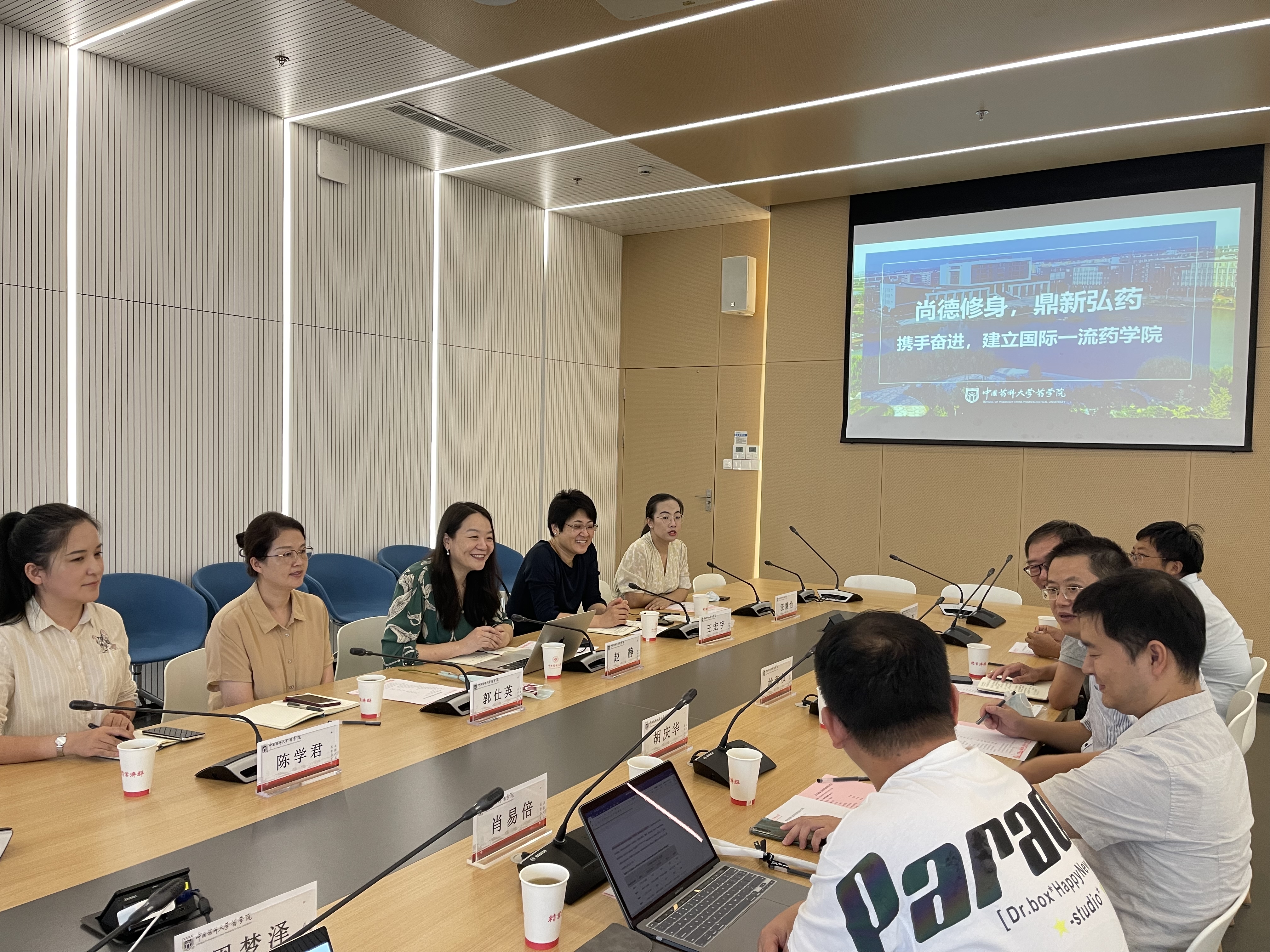 姚和权院长首先对江苏集萃药康生物科技股份有限公司一行的到来表示欢迎,并详细介绍了药学院的历史沿革、师资力量、科学研究、社会服务等情况。赵静总经理对姚和权院长的热情接待表示感谢,介绍了企业的发展历程、需求以及愿景,希望能够与药学院药理系加强合作,在科研、人才、平台建设等方面建立紧密、全方位的合作关系。胡庆华副院长着重介绍了学校专业学位研究生校企联合培养的新模式,希望与集萃药康公司联合开展以科研攻关项目为依托的产教融合人才培养。药理系主任董德利表示,集萃药康公司与药理系未来的合作共建能够很好地解决新药临床前评价的瓶颈问题,实现双方资源优势互补。双方还就共建科研平台、科研项目合作等方面内容展开了深入交流,现场气氛热烈。
