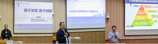 活动最后,胡巍老师以《药学类高质量创新创业计划书撰写》为题,指导学生如何将思想转化为成果,他强调创业者应以用户思维为出发点,促进创新想法落实,提出计划书撰写常见误区与应对技巧,以用户目标为中心抛出问题,结合项目实例引导学生提出解决方案。
