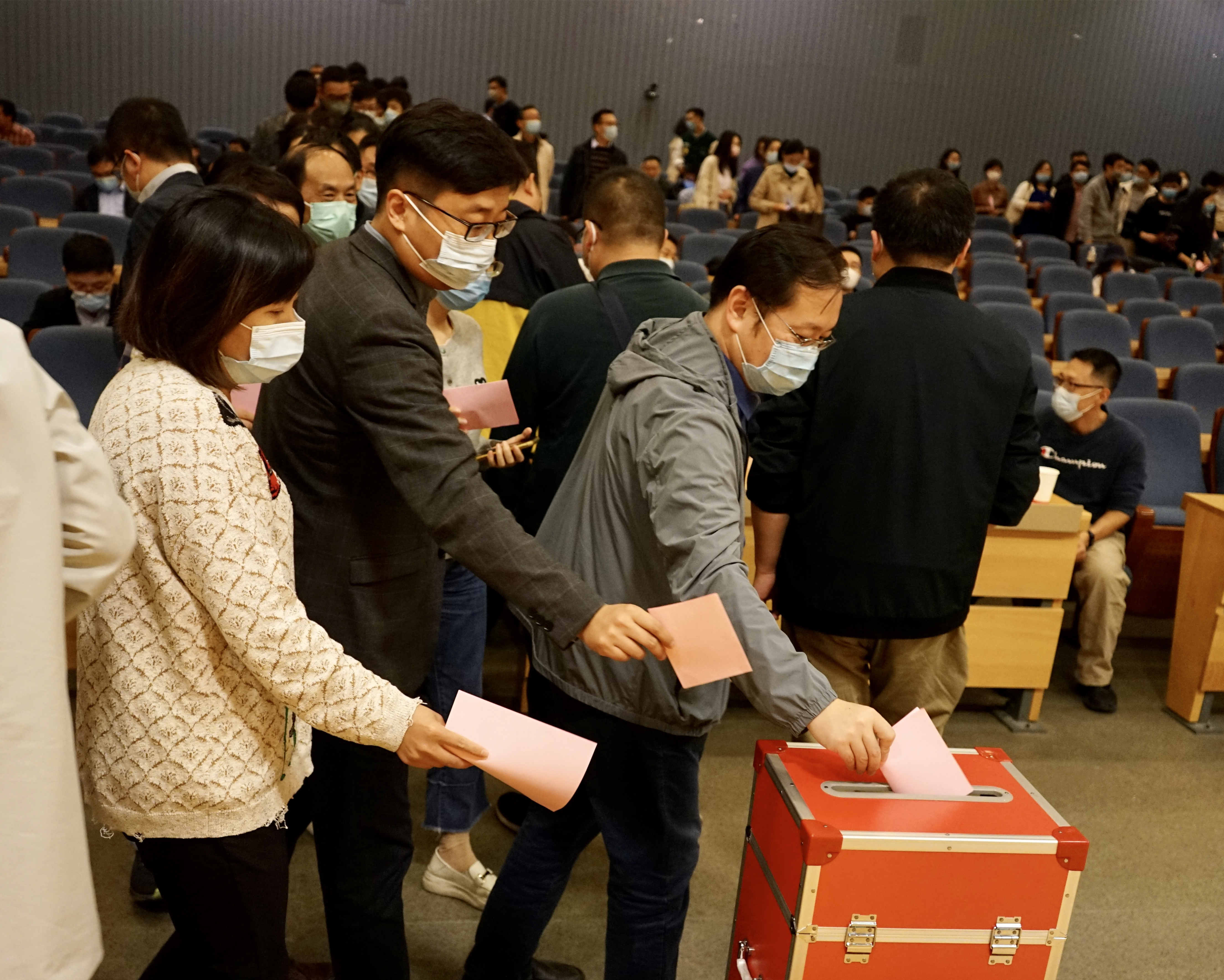 大会在雄壮的国歌声中开幕。院长姚和权首先作《世界杯直播药学院专业技术岗位聘用与考核实施细则》的制定情况说明,从政策背景、制定工作、主要内容、原则特点等方面,对《世界杯直播药学院专业技术岗位聘用与考核实施细则》的制定过程进行详细说明。随后,大会表决通过了监票人、计票人名单,在监票人徐云根主持下,全院教职工进行投票表决,经过计票,《世界杯直播药学院专业技术岗位聘用与考核实施细则》获得高票通过。