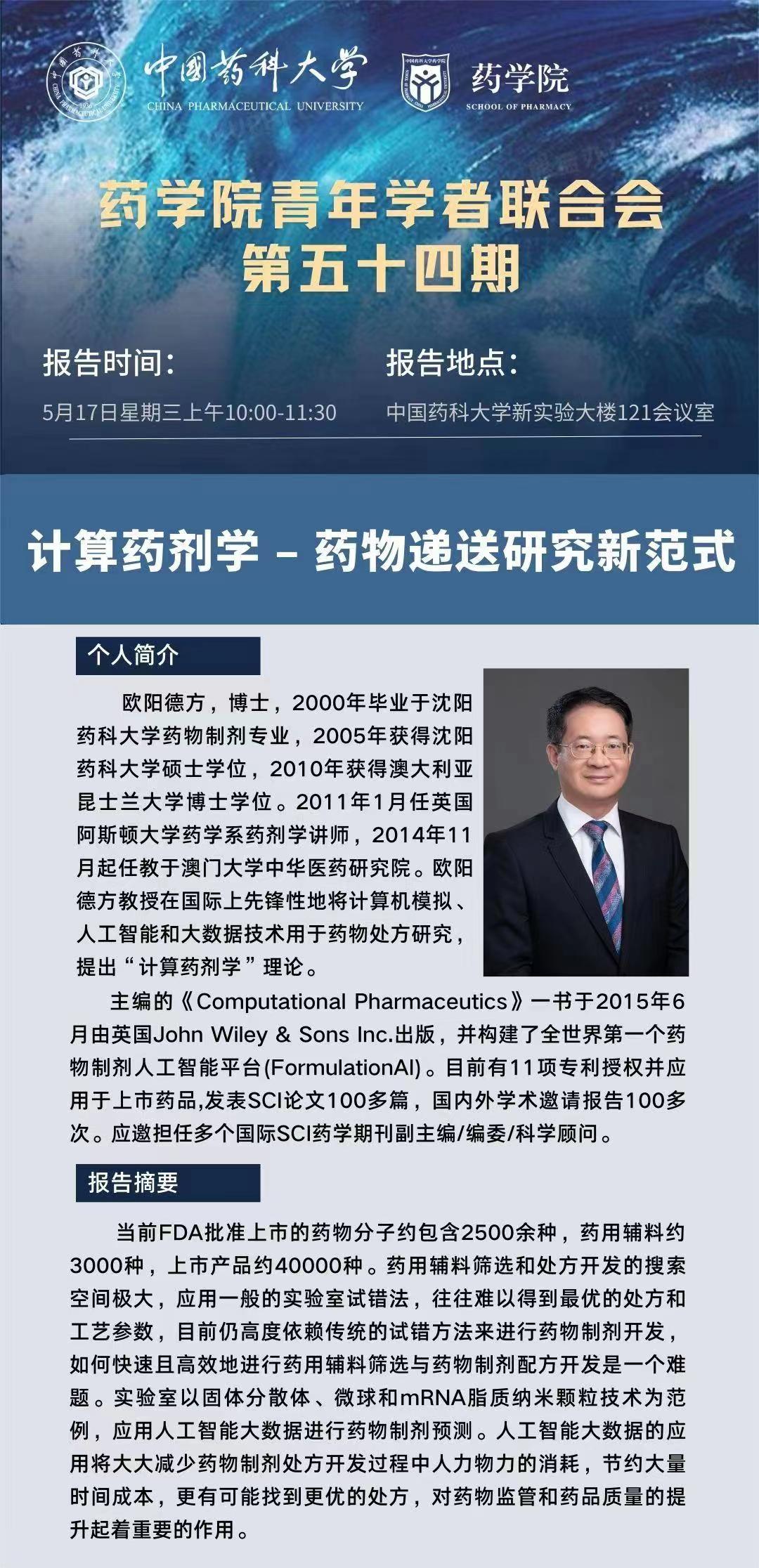 药学院青年学者联合会第五十四期学术报告通知