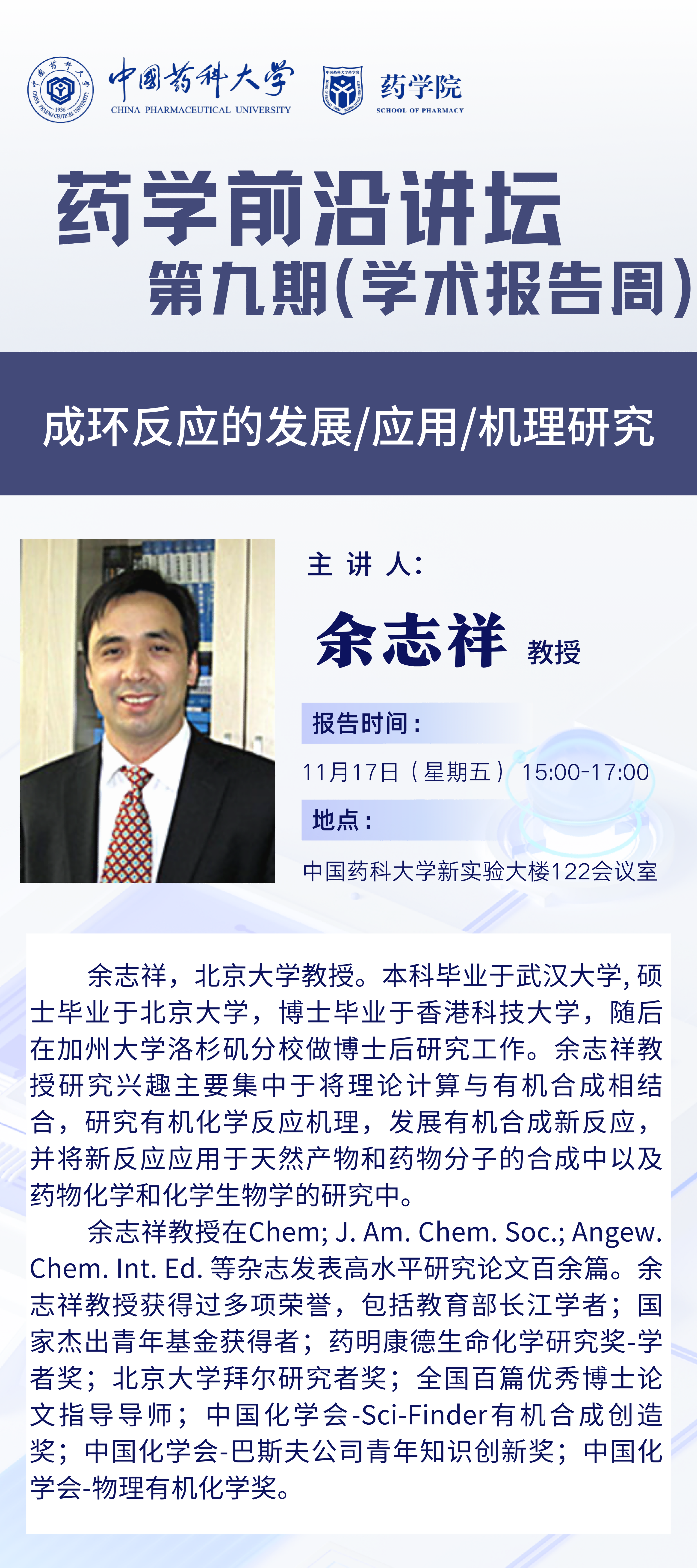 药学院第九期药学前沿讲坛通知(学术报告周)