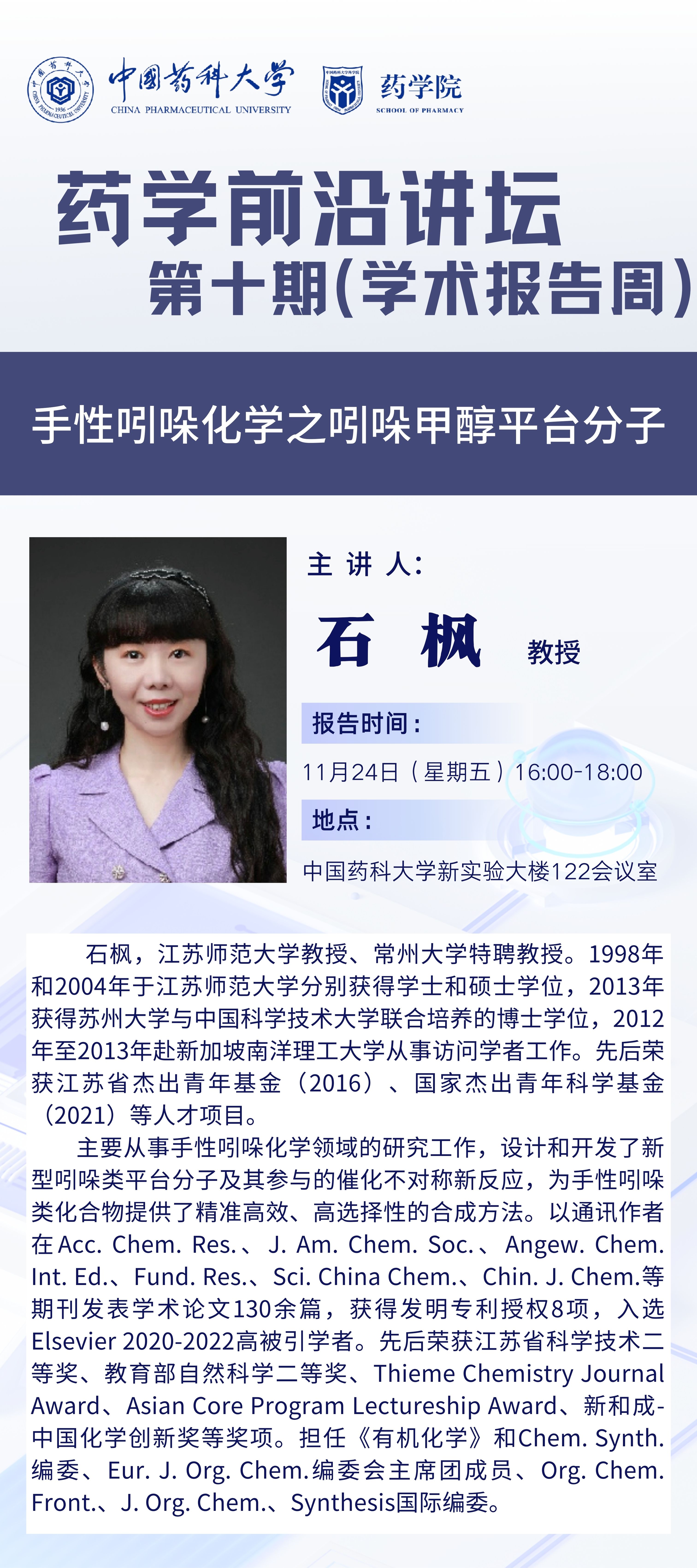 药学院第十期药学前沿讲坛通知(学术报告周)