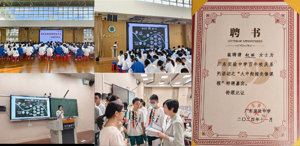 在招生宣传中,赵丽教授受邀为广东实验中学百年校庆系列活动之“大中衔接先修课程”特聘嘉宾。赵丽教授为广东实验中学、广州市第七中学的师生作了题为《聚焦生物医药新质生产力—启航药学梦想》的科普讲座,她以抗肿瘤药物为例,用故事的形式介绍了抗肿瘤药物的研发里程碑事件,青蒿素的发现,中药现代化发展等,普及了药物的研发过程以及作为特殊商品的含义,并与同学们进行了深入的交流互动,激发了广大青年学子对世界杯直播的向往之情。