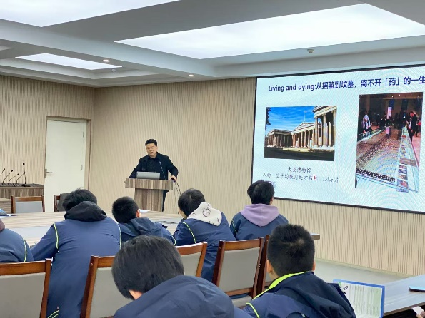 李曹龙教授为高三物化生实验班部分同学做了题为《药贯古今》的科普报告及药大招生宣传,精彩的讲解和风趣幽默的语言引起了同学们的浓厚兴趣,现场掌声不断,会后并针对部分同学的疑问做了深入的解答。本次招生宣传活动进一步加深了我校与马鞍山二中的联系,为稳步提升我校安徽生源质量打下了坚实基础。