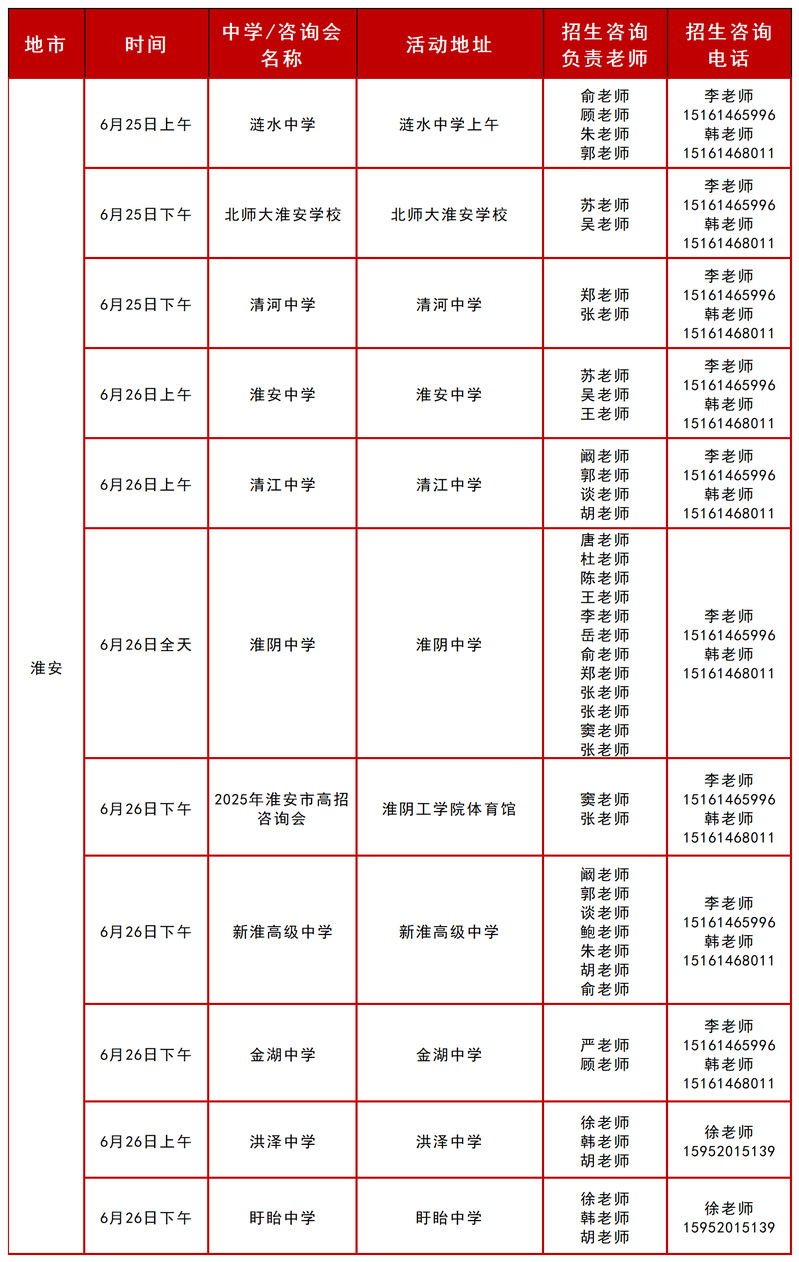 2025年淮安招生组行程安排