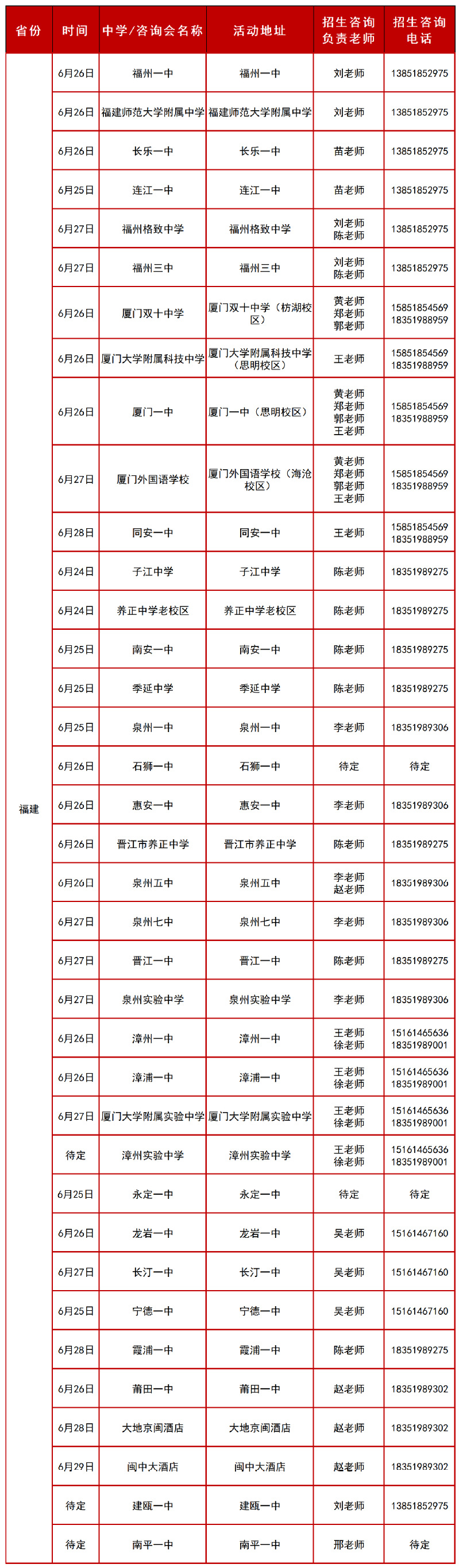 2025年福建招生组行程安排