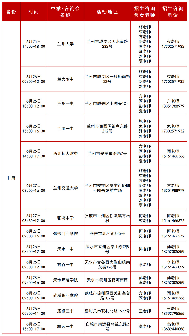 2025年甘肃招生组行程安排