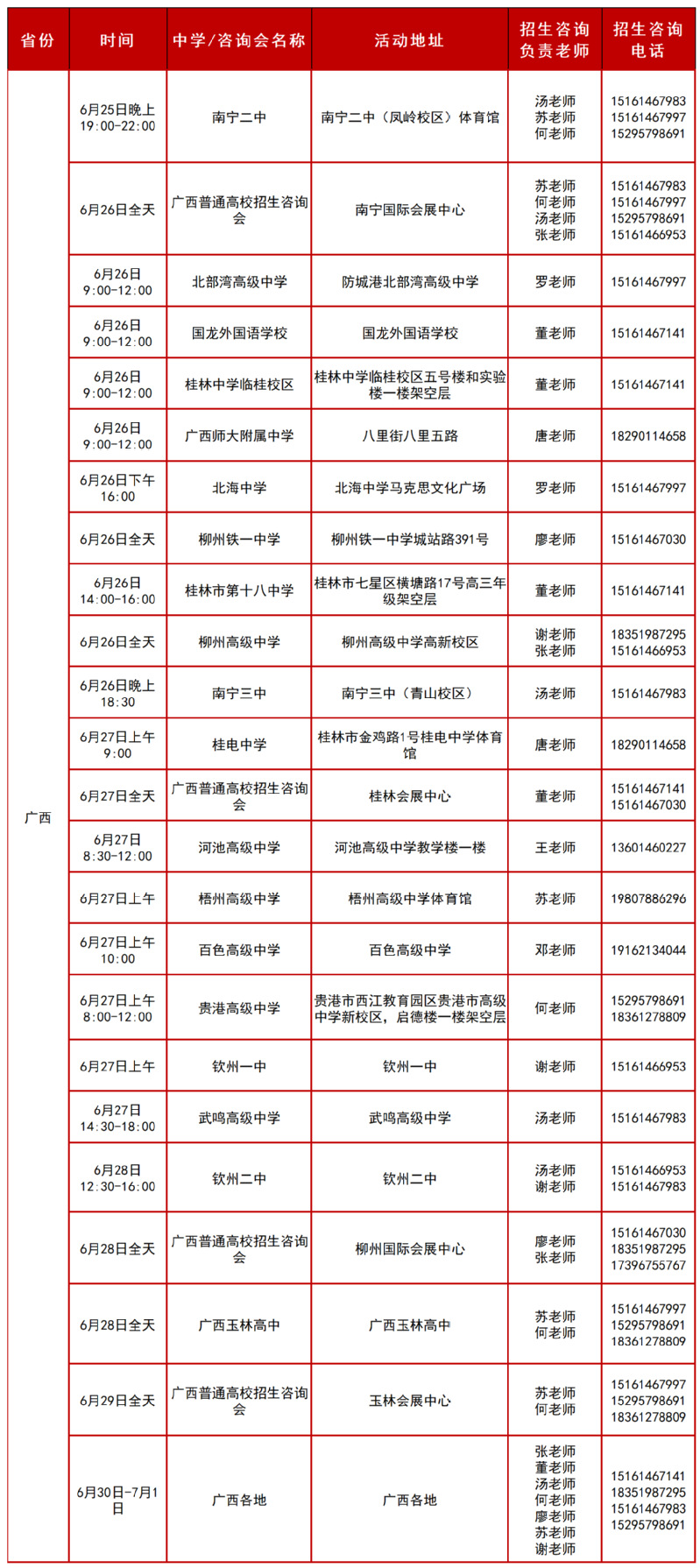 2025年广西招生组行程安排