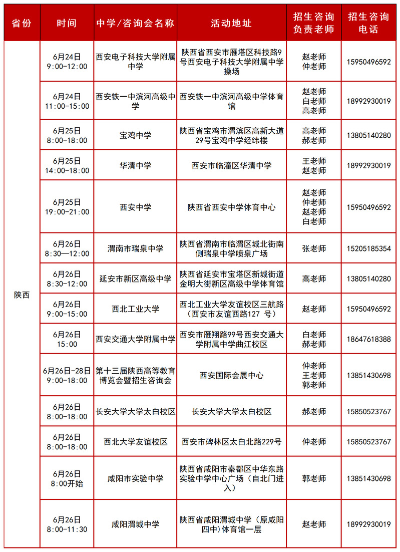 2025年陕西招生组行程安排