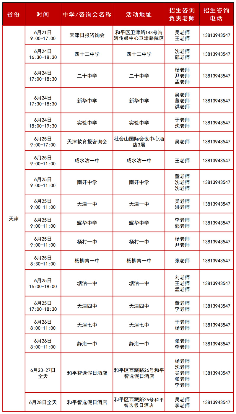 2025年天津招生组行程安排