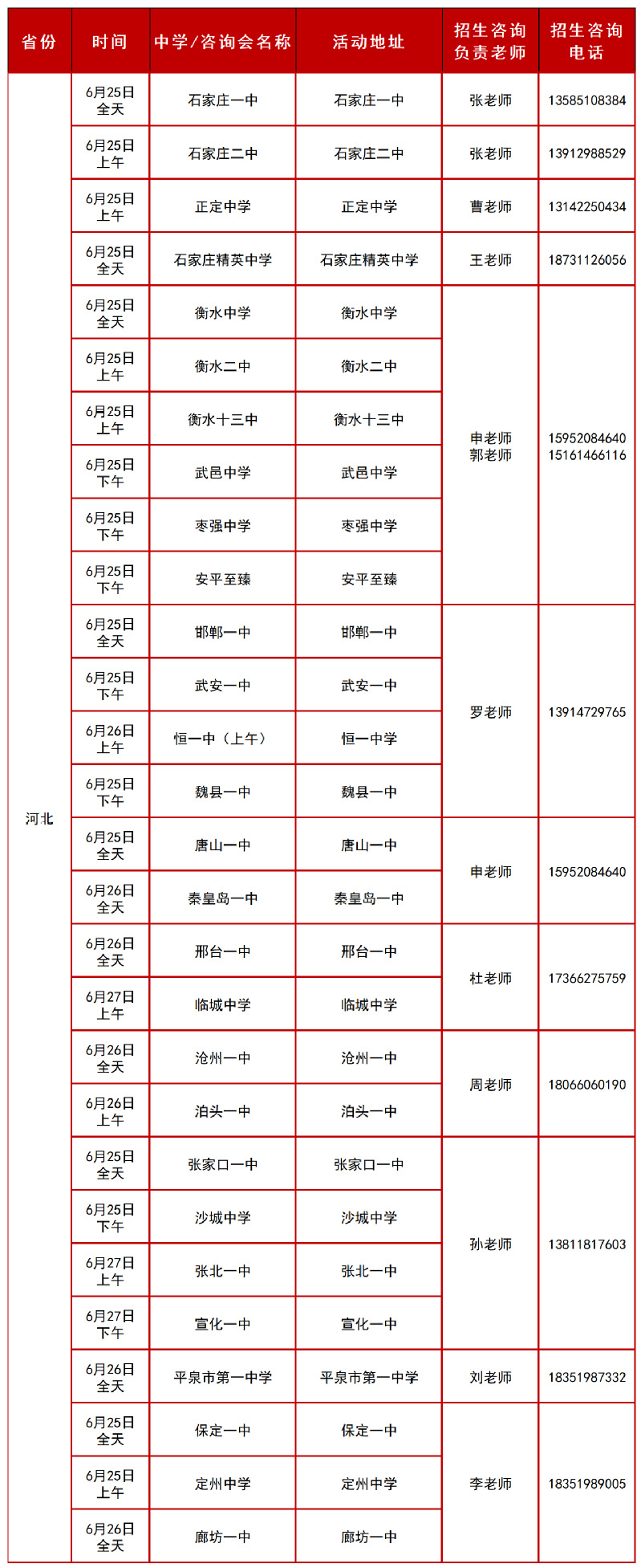 2025年河北招生组行程安排