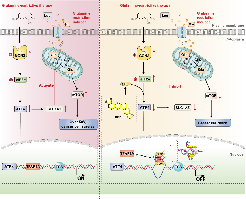黄连碱靶向ATF4-G4增敏谷氨酰胺限制疗法示意图