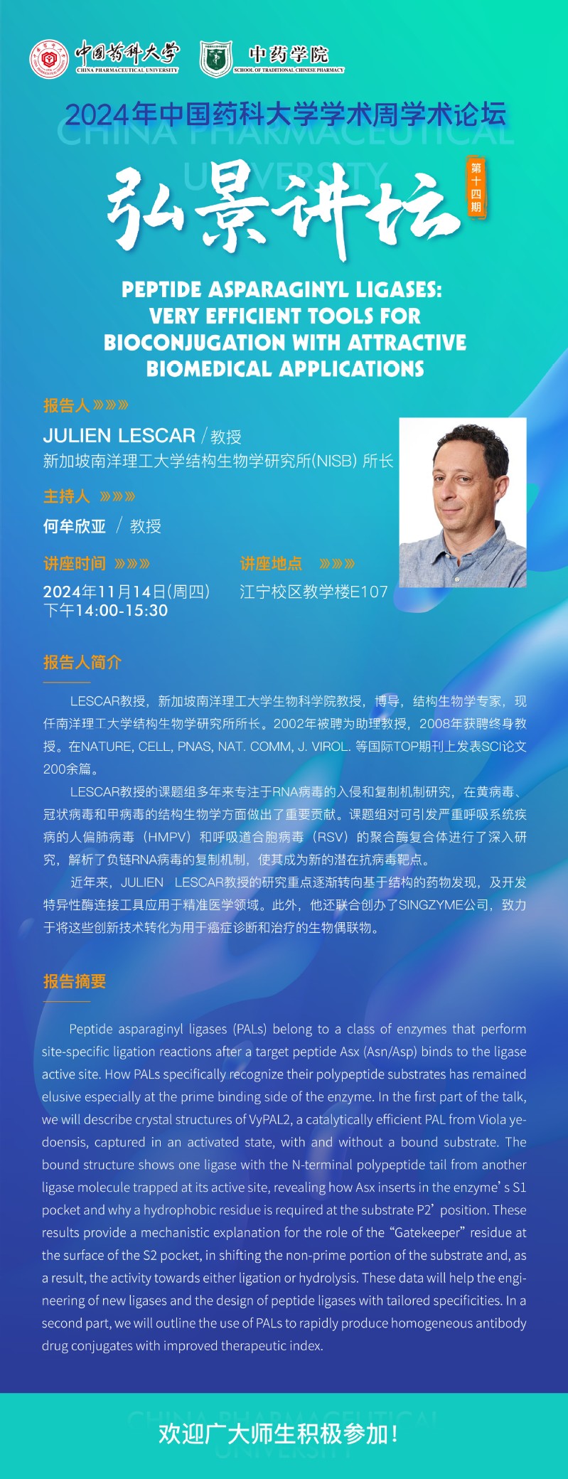 2026世界杯名额分布第十四期“弘景讲坛”:新加坡南洋理工大学生物科学院JULIEN LESCAR教授学术报告