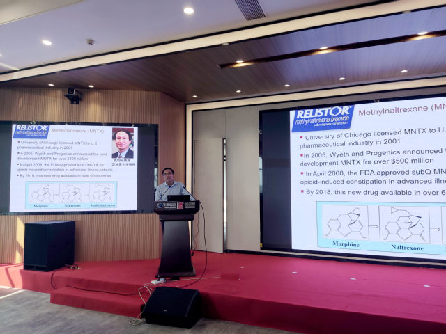 调研期间,齐炼文院长受邀为江阴天江药业研究院作专题学术报告,并进行了深入的科研合作交流。