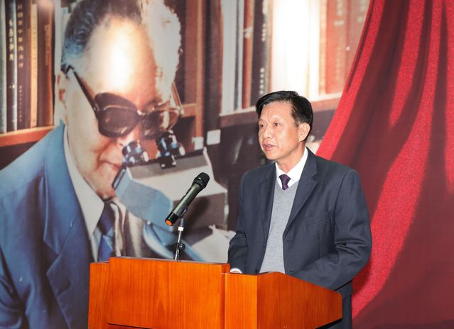 校党委副书记、副校长王正华在开幕式上致辞,他表示,我们感恩徐国钧院士为国家、为药大所作出的贡献。在全校深入学习宣传贯彻落实党的二十大精神之际,我们在此举办纪念徐国钧院士诞辰100周年风采展,正是为了学习他矢志不渝的爱国情操、坚韧不屈的拼搏精神、精益求精的学术风范、提携后学的教育情怀,对于更好地传承和弘扬以徐国钧先生为代表的科学家精神有深远的意义。